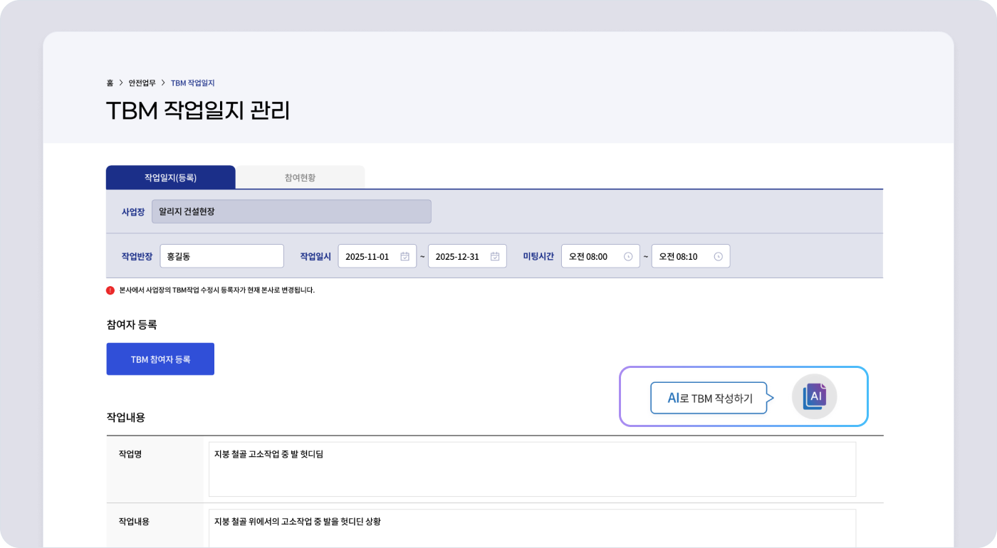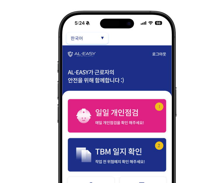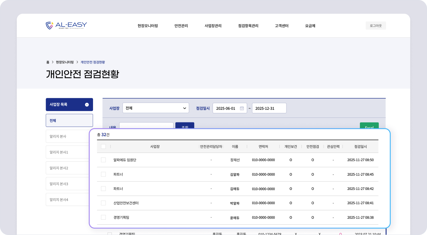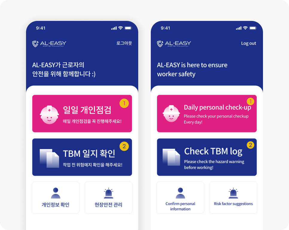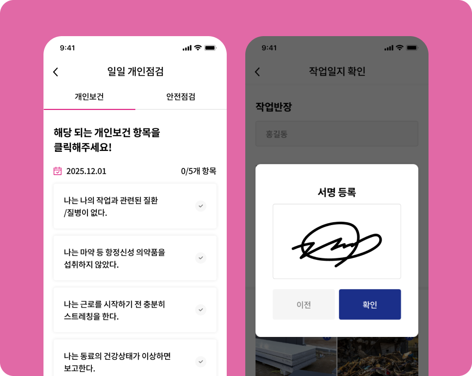 실시간 근로자 개인 보건 및 안전 점검 확인