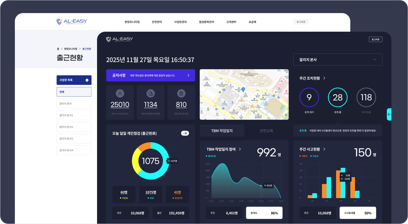 주차별 사고 현황, 안전관리 현황 실시간 확인