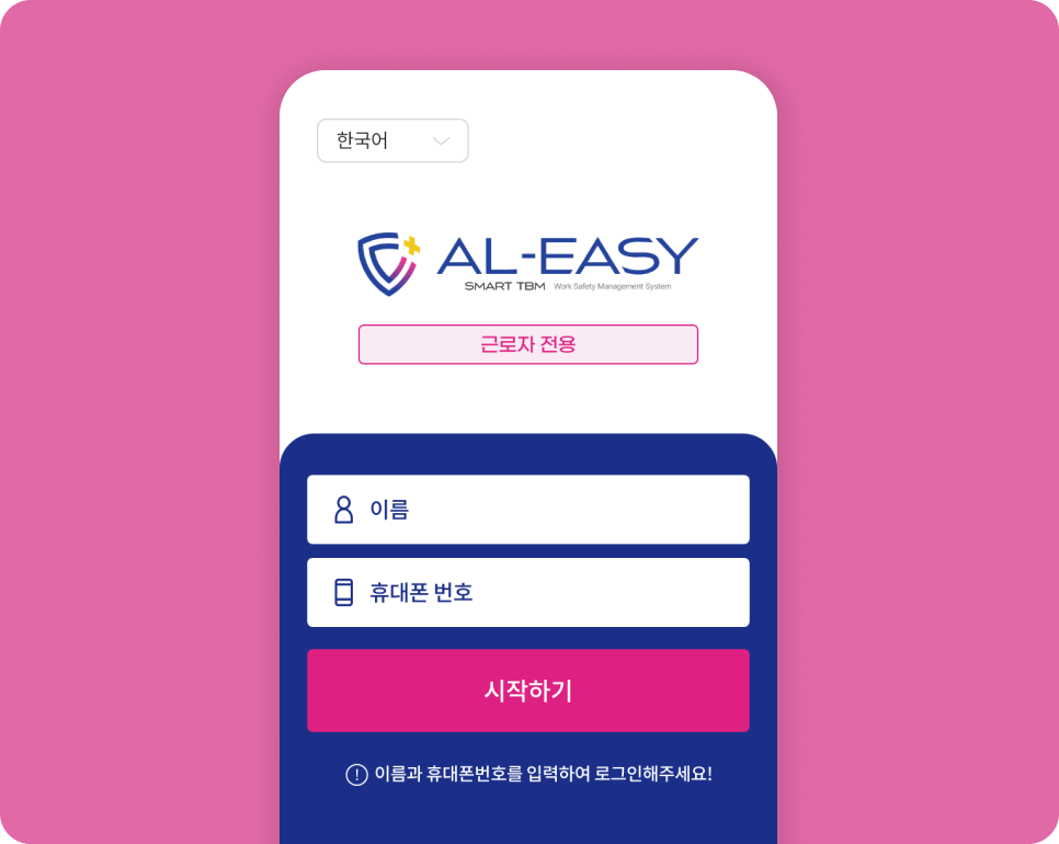이름과 전화번호만으로 간편하게 로그인하세요.