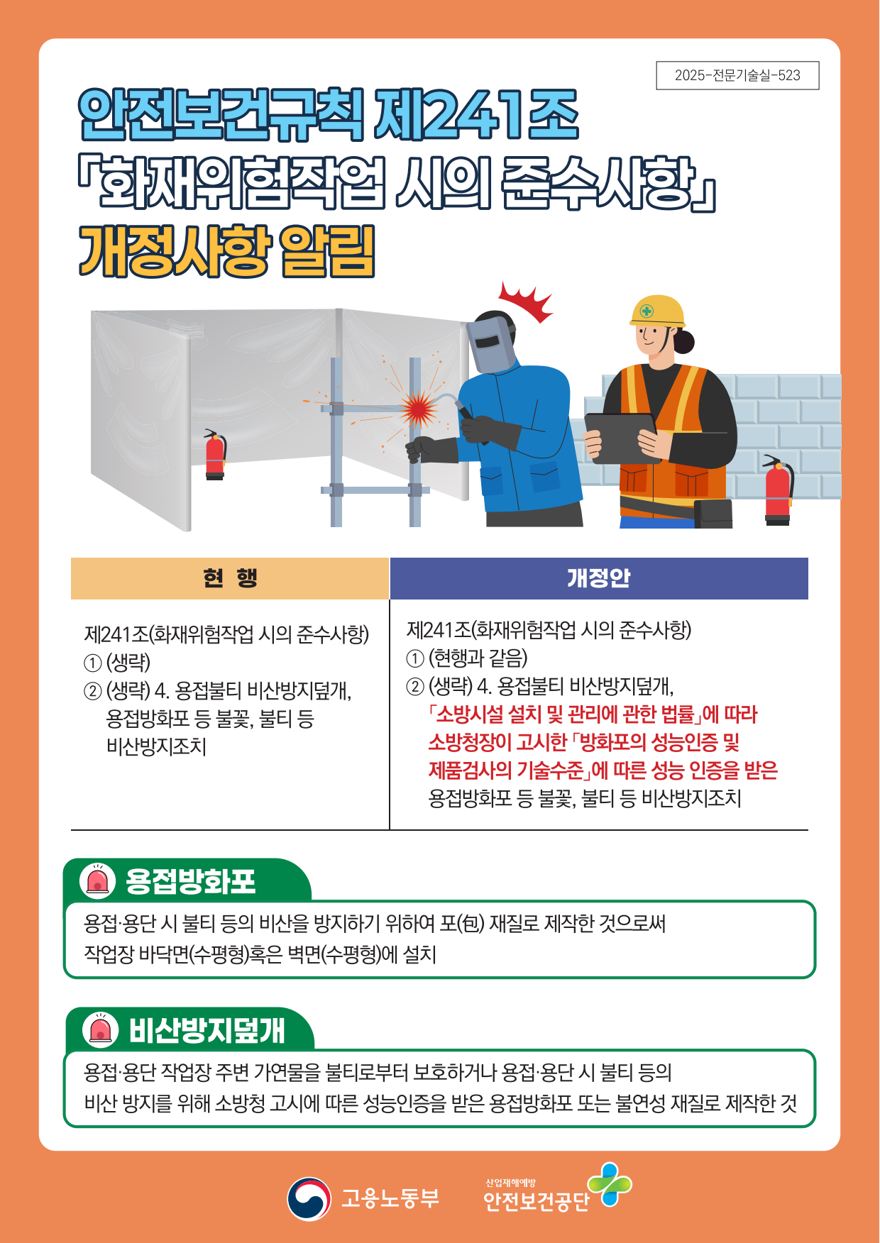 안전보건규칙 제241조 「화재위험작업 시의 준수사항 」개정사항 안내드립니다.
