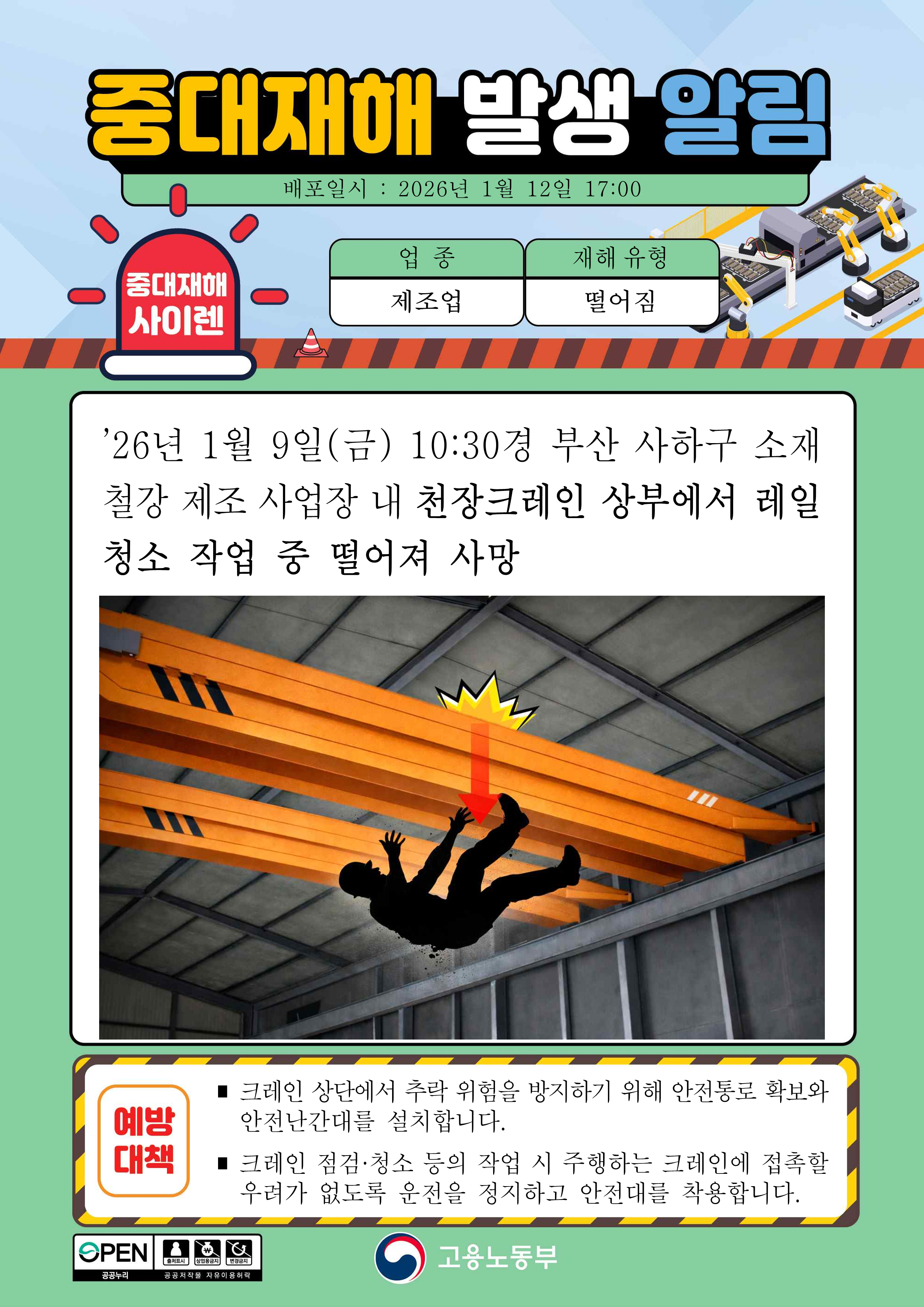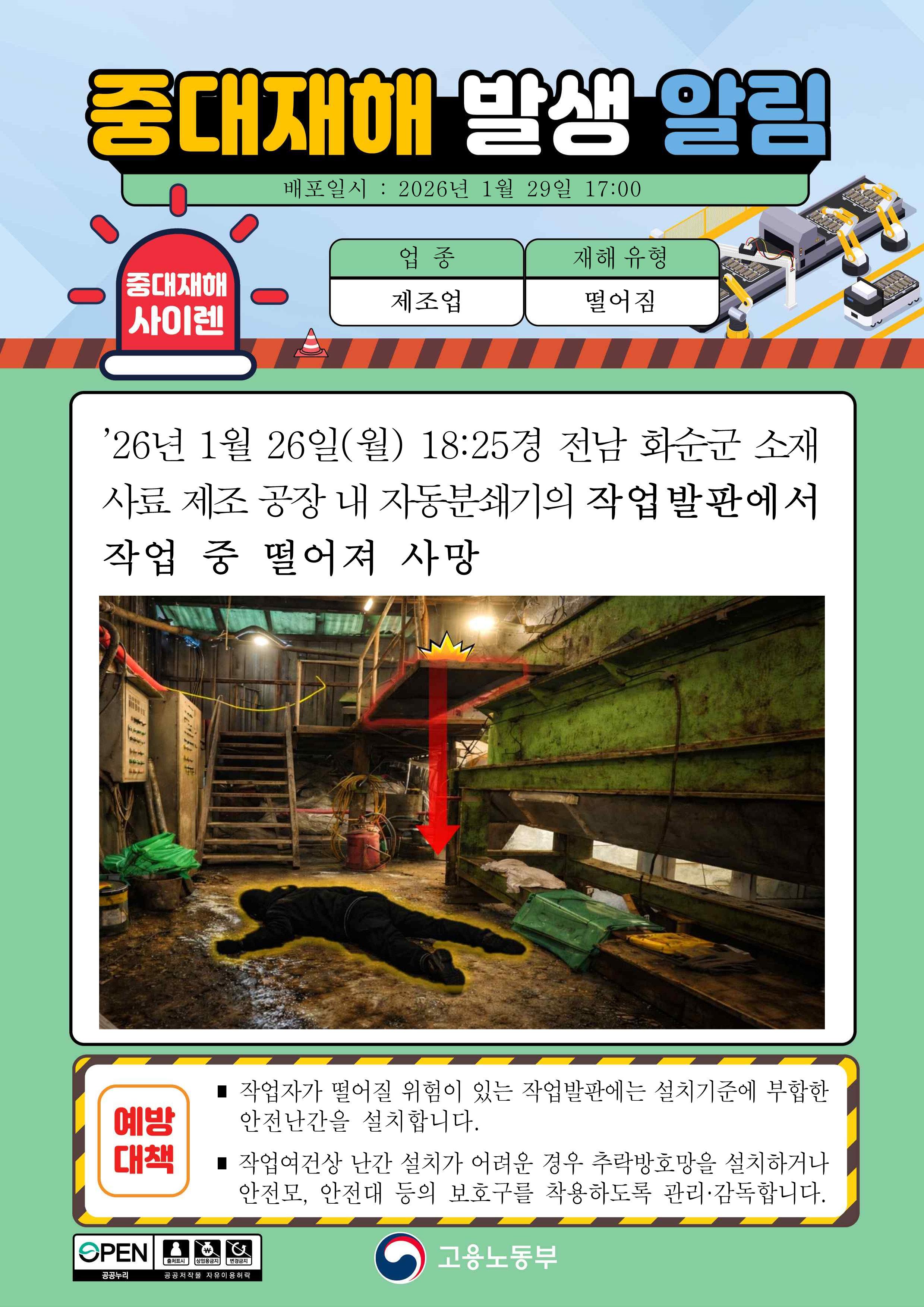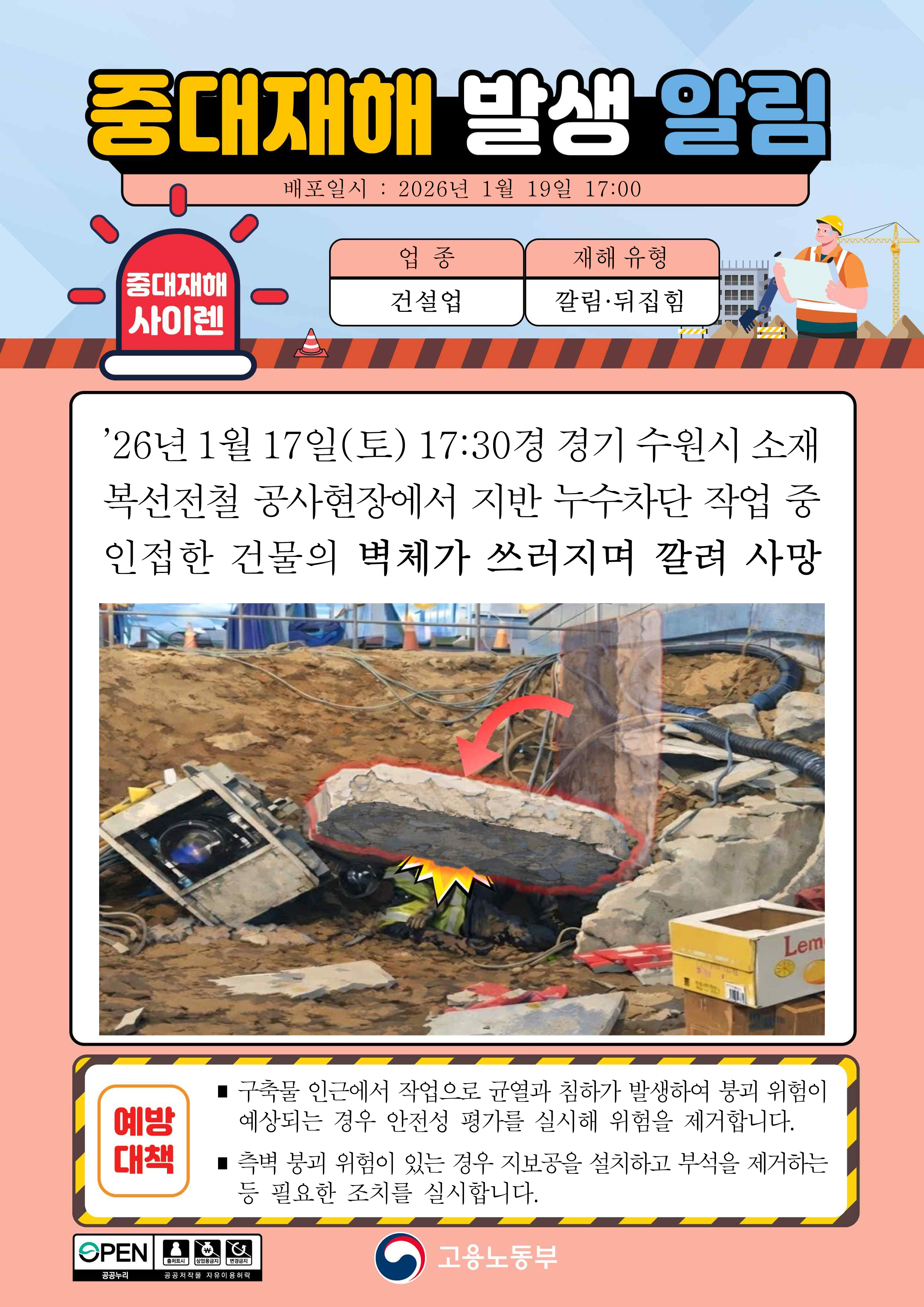 중대재해 발생 알림